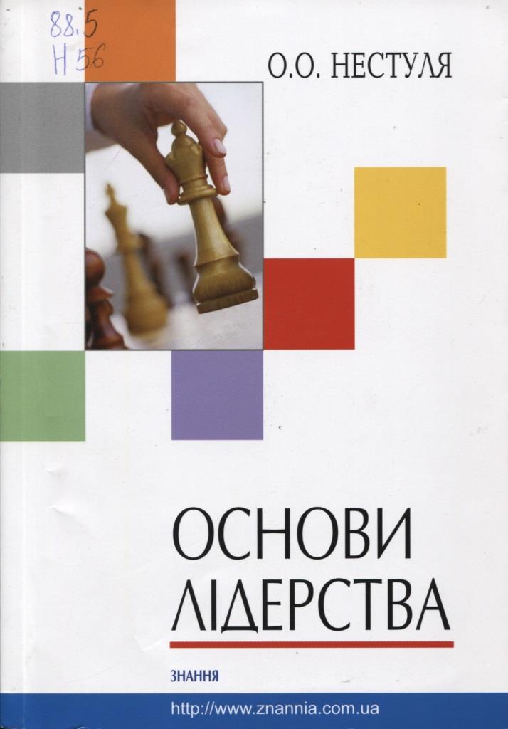 Основи лідерства . Тренінг лідерських якостей та практичних навичок менеджера : навч. посіб. / О. О. Нестуля, С. І. Нестуля, В. В. Карманенко. [Кн. 1]. - К. : Знання, 2013. - 288 с. : кол.іл.