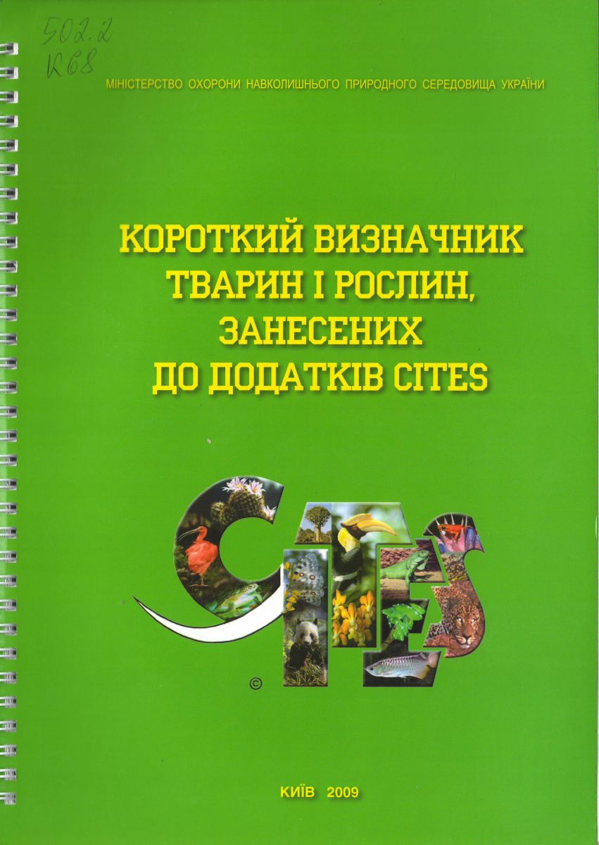 Короткий визначник тварин і рослин, занесених до додатків CITES [Текст] / М-во охорони навколиш. природ. середовища України ; відп. ред. Т. В. Тимочко. - К. : Центр еколог. освіти та інформації, 2009. - 60 с. : кол.іл.
