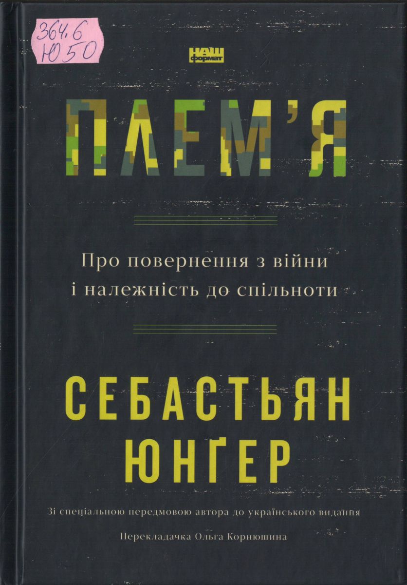 Юнґер, Себастьян. Плем’я : про повернення з війни і належність до спільноти / С. Юнґер ; пер. з англ. О. Корнюшина. – 2-ге вид. – К. : Наш Формат, 2024. – 128 с.