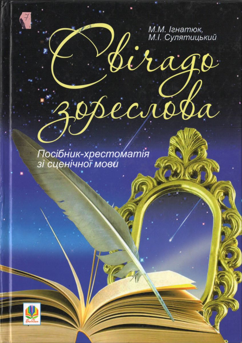 Ігнатюк, Марія Миколаївна. Свічадо зореслова : посіб.-хрестоматія зі сцен. мови для студ. вищ. навч. закл. культури і мистецтв / М. М. Ігнатюк, М. І. Сулятицький. – Тернопіль : Навчальна книга – Богдан, 2011. – 532 с.