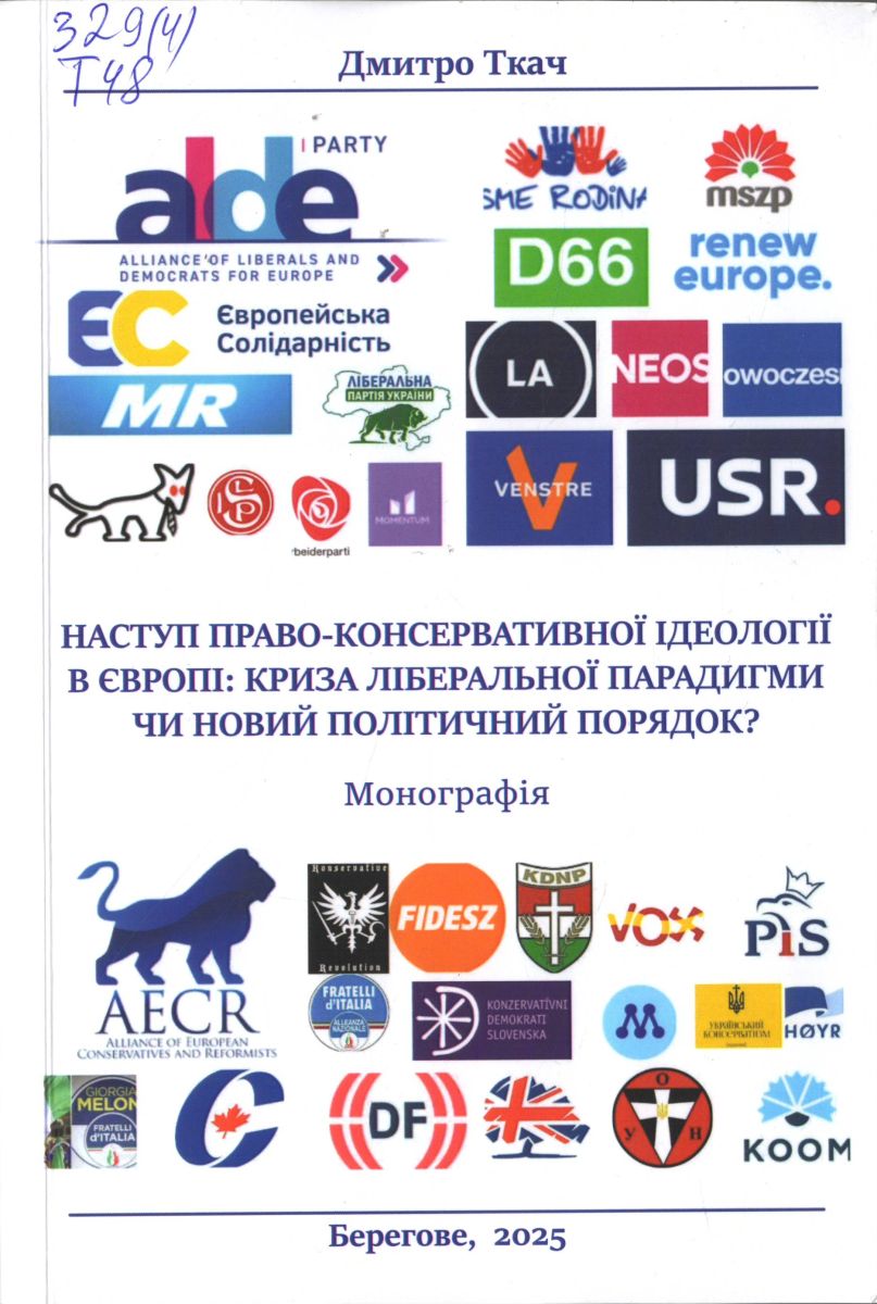 Ткач, Дмитро Іванович. Наступ право-консервативної ідеології в Європі: криза ліберальної парадигми чи новий політичний порядок? : монографія / Д. І. Ткач ; Закарпат. угор. ін-т ім. Ф. Ракоці II. – Берегове : ЗУІ ім Ф. Ракоці ІІ, 2025. – 324 с.