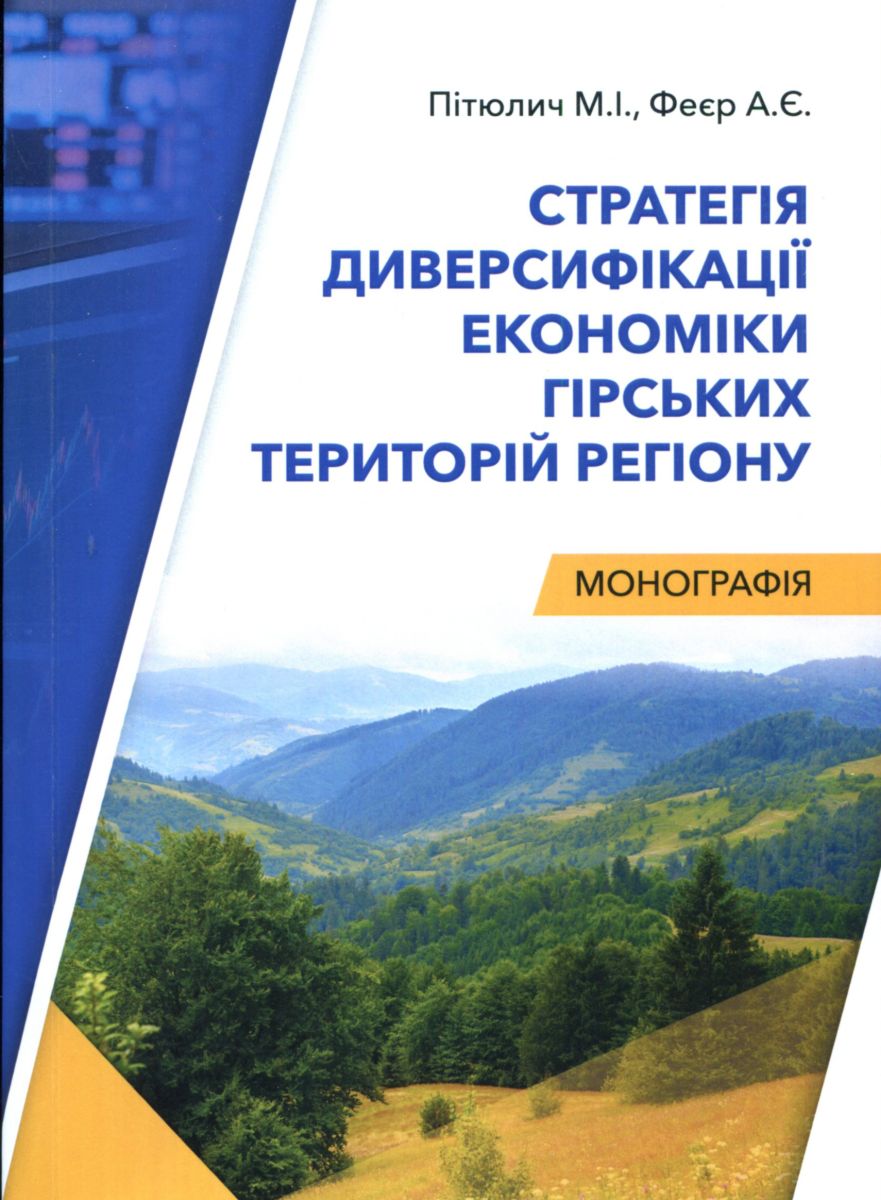 Пітюлич, Михайло Іванович. Стратегія диверсифікації економіки гірських територій регіону : монографія / М. І. Пітюлич, А. Є. Феєр ; Нац. акад. наук України, М-во освіти і науки України, Закарпат. реґіон. центр соц.-екон. і гуманіт. дослідж. НАН України. – Ужгород : РІК-У, 2025. – 224 с. : іл., табл. – Бібліогр. у підрядк. прим.