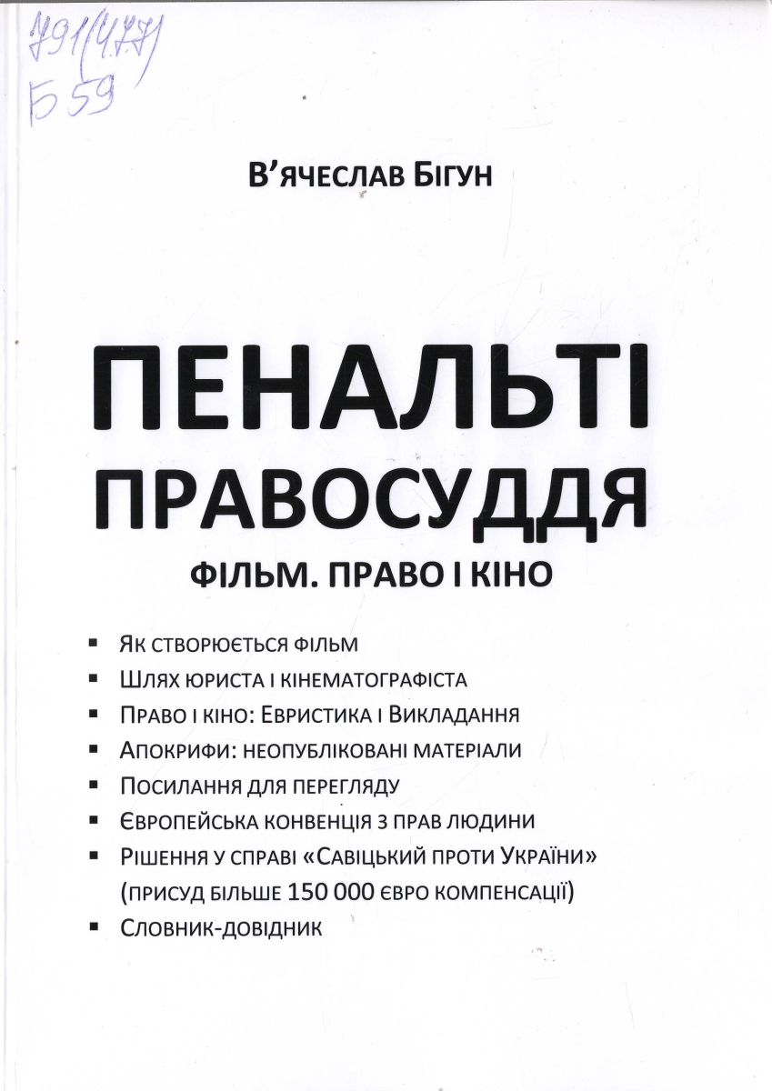 Бігун, В’ячеслав Степанович. Пенальті правосуддя : Фільм. Право і кіно : [про рішення ЄСПЛ у справі "Савіцький проти України"] : [монографія] / В. С. Бігун. – Львів : Видавець Вікторія Кундельська, 2022. – 164 с. : іл.