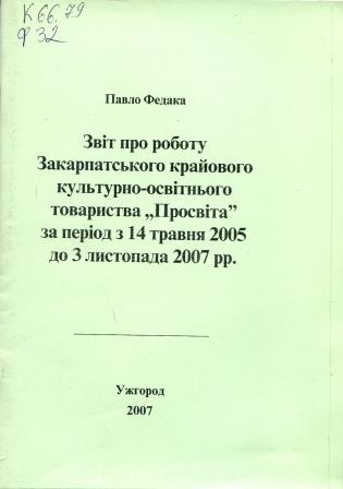 У звіті голови Закарпатського крайового культурно-освітнього товариства “Просвіта”, кандидата історичних наук Павла Федаки за період з 14 травня 2005 до 4 листопада 2007 pp., накреслено основні напрямки роботи і завдання крайової “Просвіти” на наступні два роки.