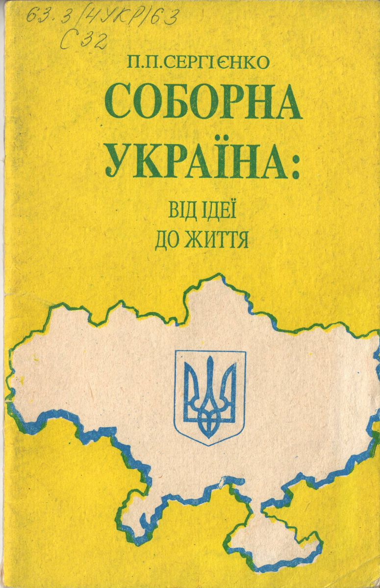 Сергієнко, Петро Панасович. Соборна Україна : від ідеї до життя / П. П. Сергієнко. – К. : Знання, 1993. – 64 с.